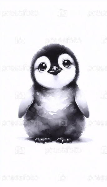 A Pleading Penguin акварельный художественный печат, Ai generated image