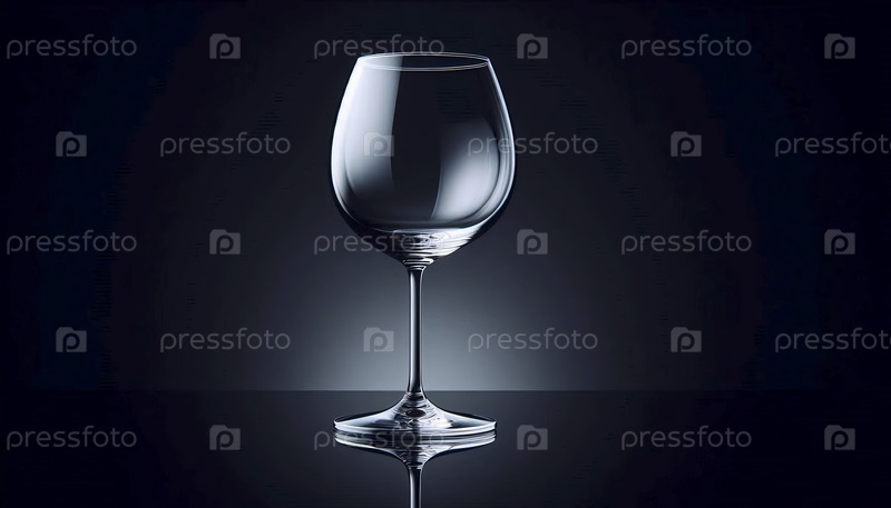 Пустой прозрачный макет винного стекла с длинным стволом, помещенный на отражающую черную поверхность, Ai создал изображение