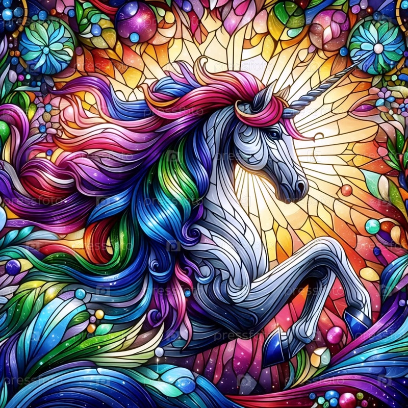 Единорог в стиле стекла, Ai generated image