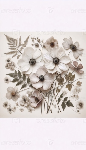 A dried flowers herbarium art print, Ai generated image А сушеные цветы гербария художественная печать, Ай создал изображение