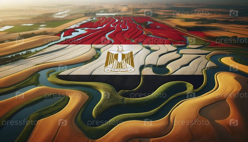 Египетский флаг в сельском хозяйстве на Ниле, Ai generated image A