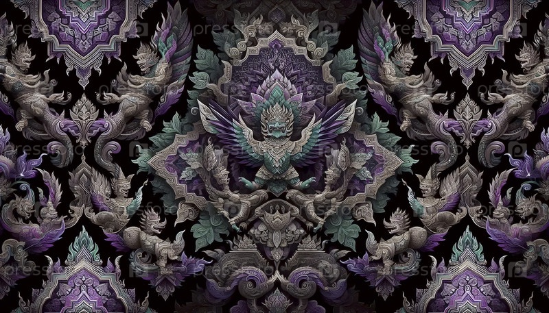 Тайские шелковые узоры Бесшовный дизайн, Ai generated image