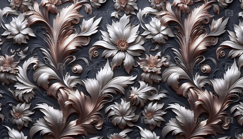 Белое золото розовое золото коричневое золото цветочное 3D-образ, Ai generated image