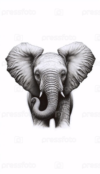 чернильный рисунок детского слона