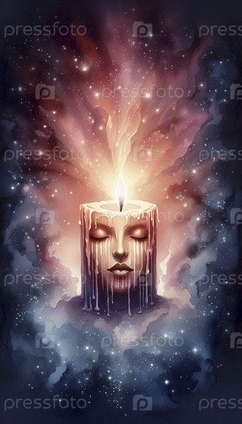 Свеча с теплым светом акварельный арт-принт, Ai A generated image