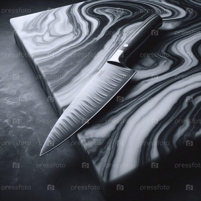 Мокет ножа повара из полированной стали на бурно-серой мраморной поверхности, Ai generated image
