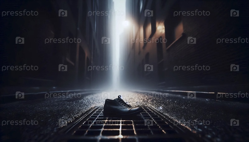 Широкий, атмосферный снимок одинокой обуви на пустой улице Ай создал изображение