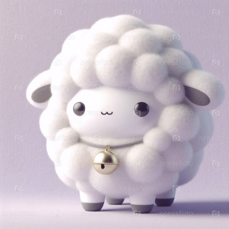 Простой кавайский персонаж овцы с колоколом, Ai generated image