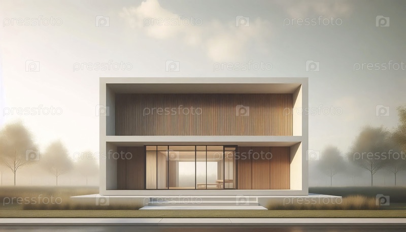 Нейтральный фотоотпечаток современного дома середины века, Ai generated image
