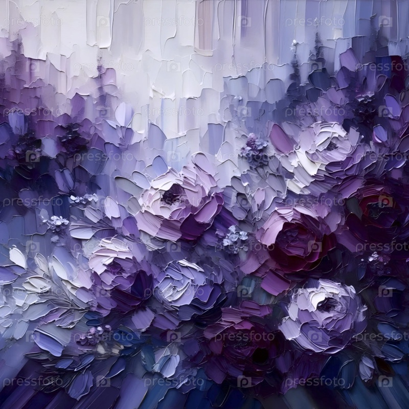 Абстрактная фиолетовая цветочная пейзажная живопись, Ai generated image