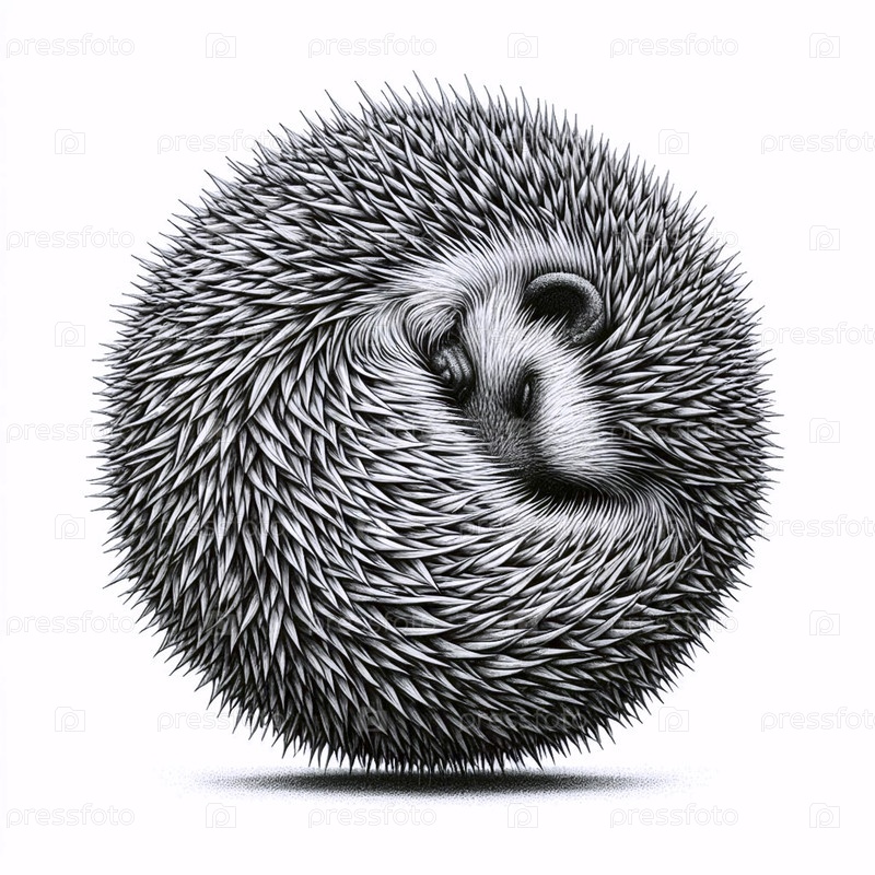 Curled Hedgehog чернила A drawing art print, Ai создал изображение