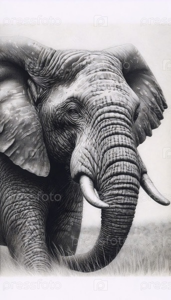 A majestic elephant ink drawing art print, Ai generated image Изображение было создано Ай