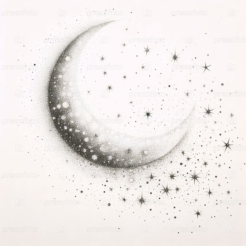 Полумесяц Луна и звезды чернила рисование художественная печать, Ai generated image