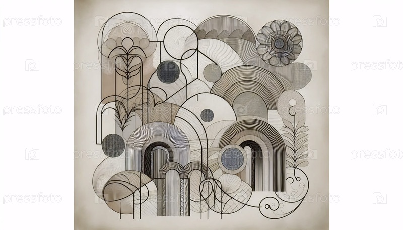 Геометрическое стеновое искусство в стиле бохо середины века, Ai generated image