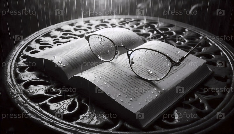 Пара очков для чтения на открытом, крылом дождевом романе Ай создала изображение