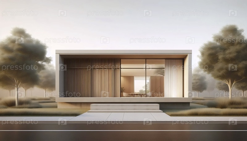 Нейтральный фотоотпечаток современного дома середины века, Ai generated image