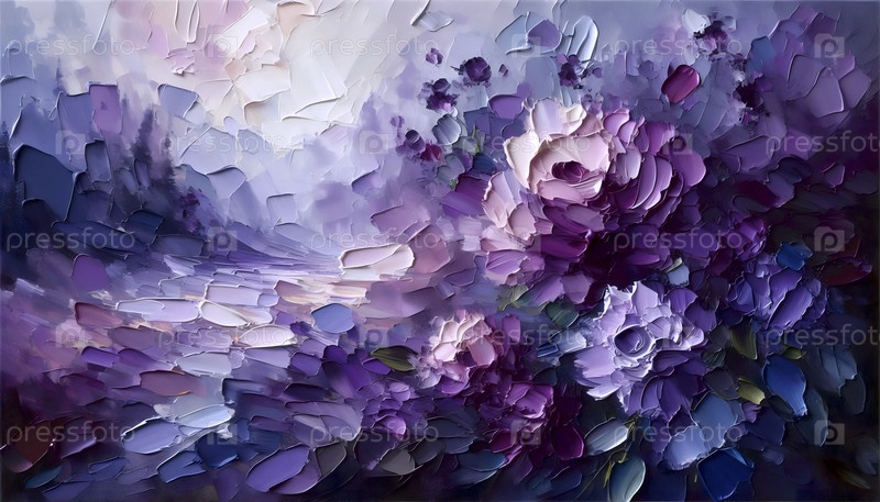 Абстрактная фиолетовая цветочная пейзажная живопись, Ai generated image