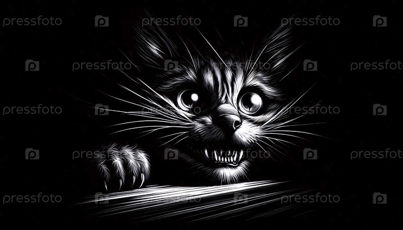 Ужасный котенок художественная печать, Ai generated image A