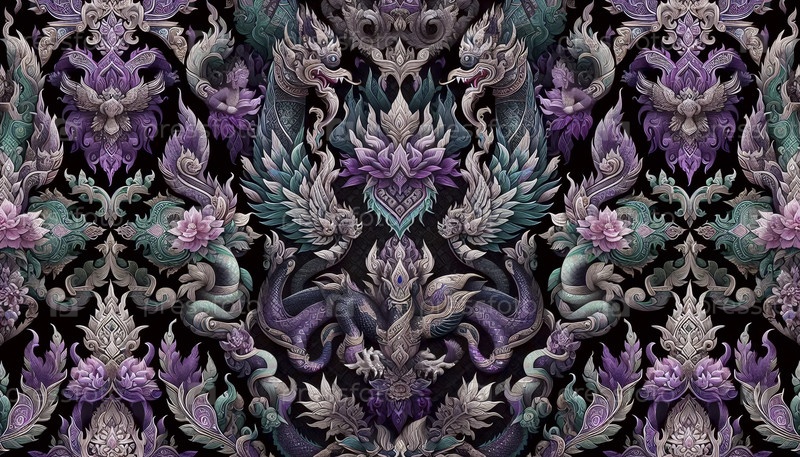 Тайские шелковые узоры Бесшовный дизайн, Ai generated image