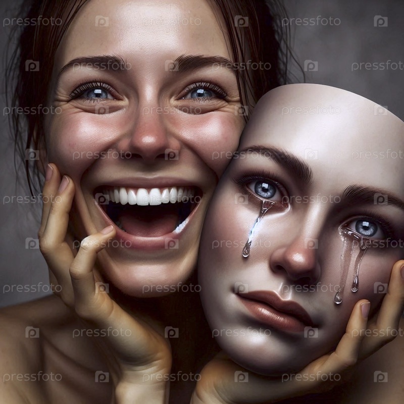 Женщина, держащая плачущую маску, Ai generated image