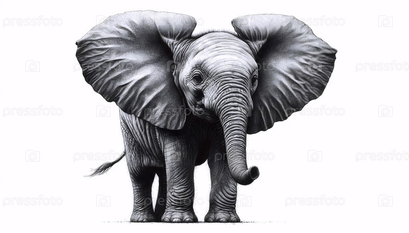 чернильный рисунок детского слона