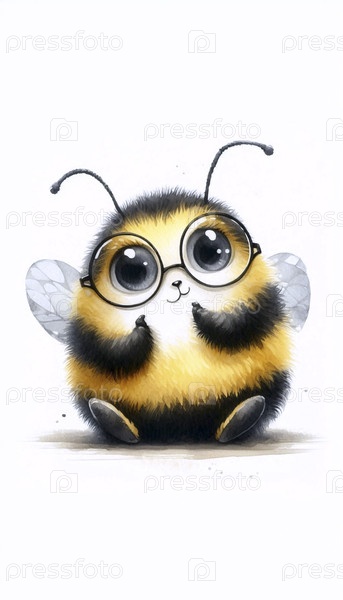 Бамблби с крошечными очками Акварельная художественная печать, Ai generated image