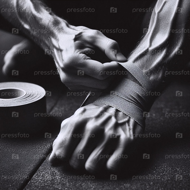 Трансформационный момент личного фитнеса: руки, обернувшиеся в атлетическую ленту с сосредоточенной решимостью, Ai generated image