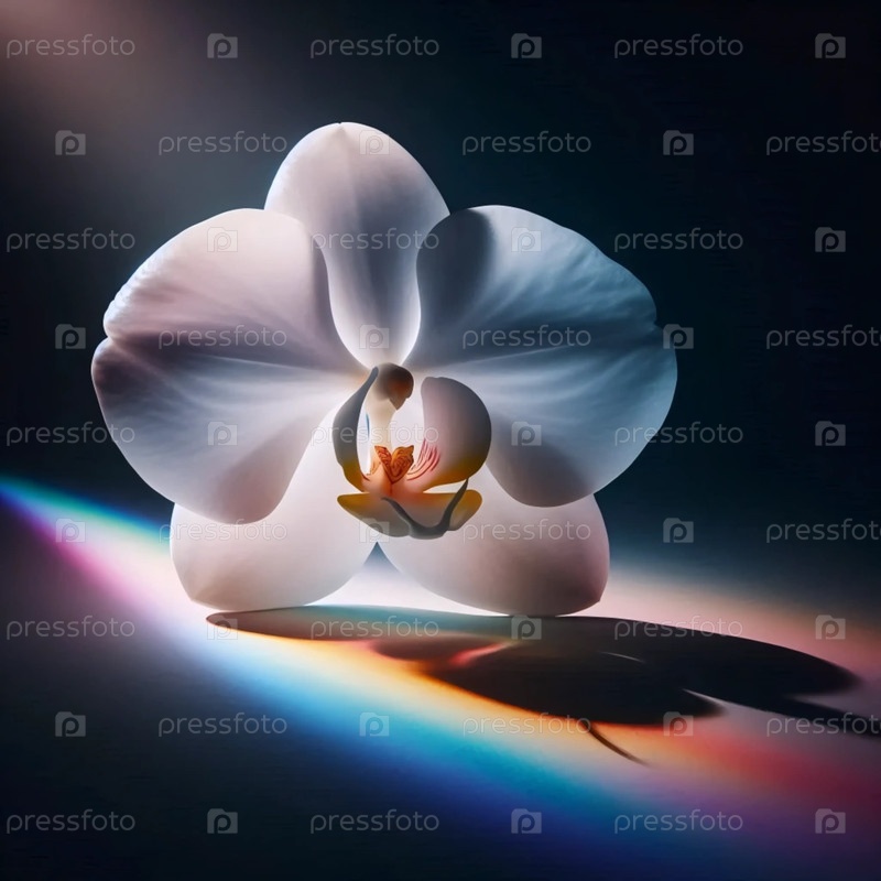Орхидея с радужным освещением, Ai generated image