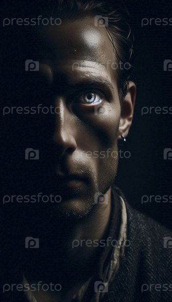 Трехчетверточный портрет, освещенный капризным классическим освещением Рембрандта, Ai generated image