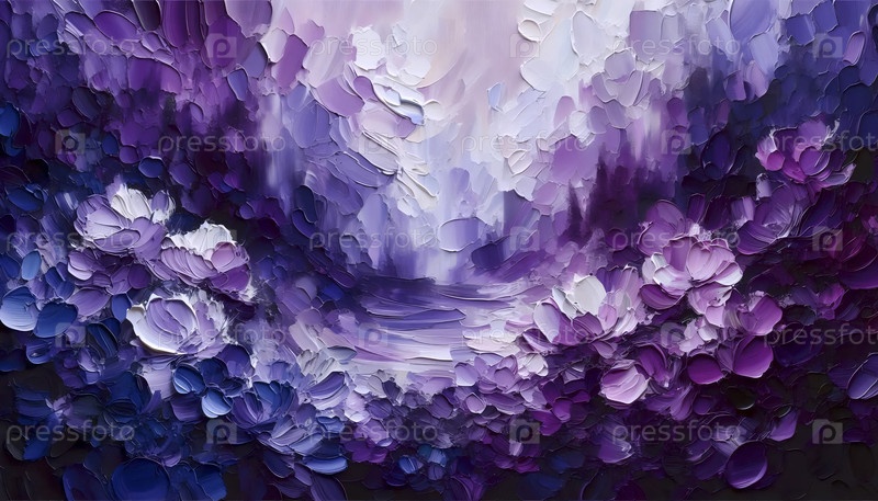 Абстрактная фиолетовая цветочная пейзажная живопись, Ai generated image