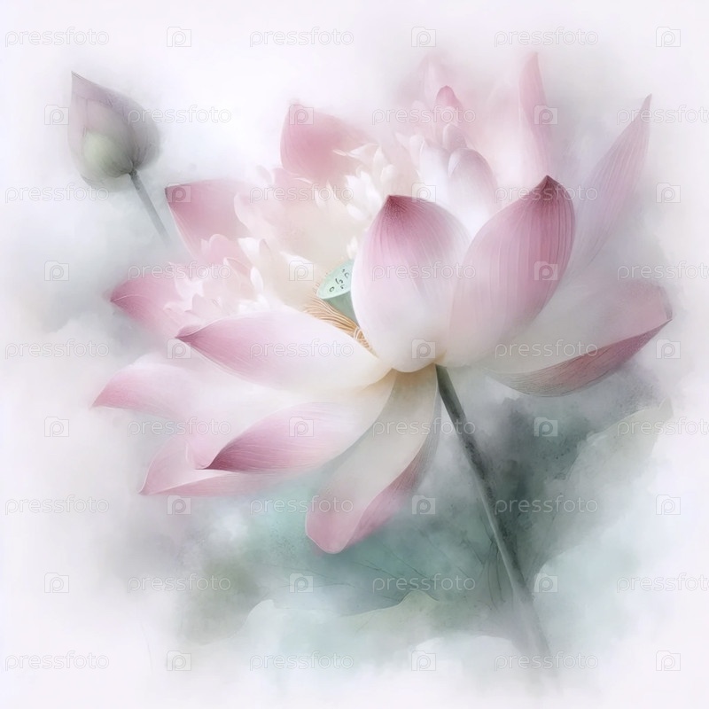 Фотографическая печать в акварели розового лотоса, Ai generated image
