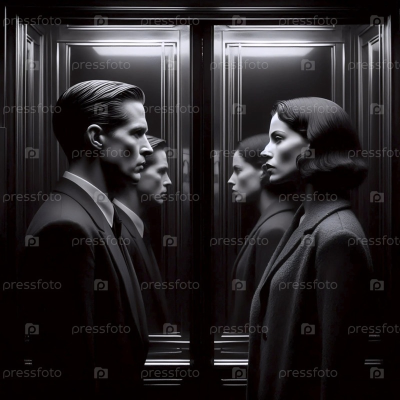 Встреча в зеркале лифта, Ai generated image