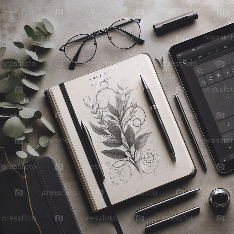 Детальный, амбициозный снимок курируемого рабочего пространства для творческого потока, Ai generated image