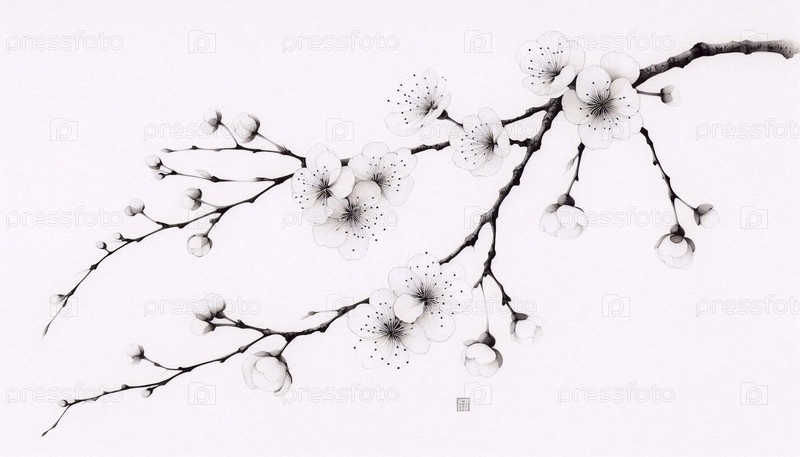 Пара вишневых цветов чернила рисование художественная печать, Ай создал изображение A