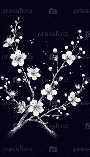 A Pair of Cherry Blossoms чернила рисунок художественного произведения печать на черном, Ai generated image