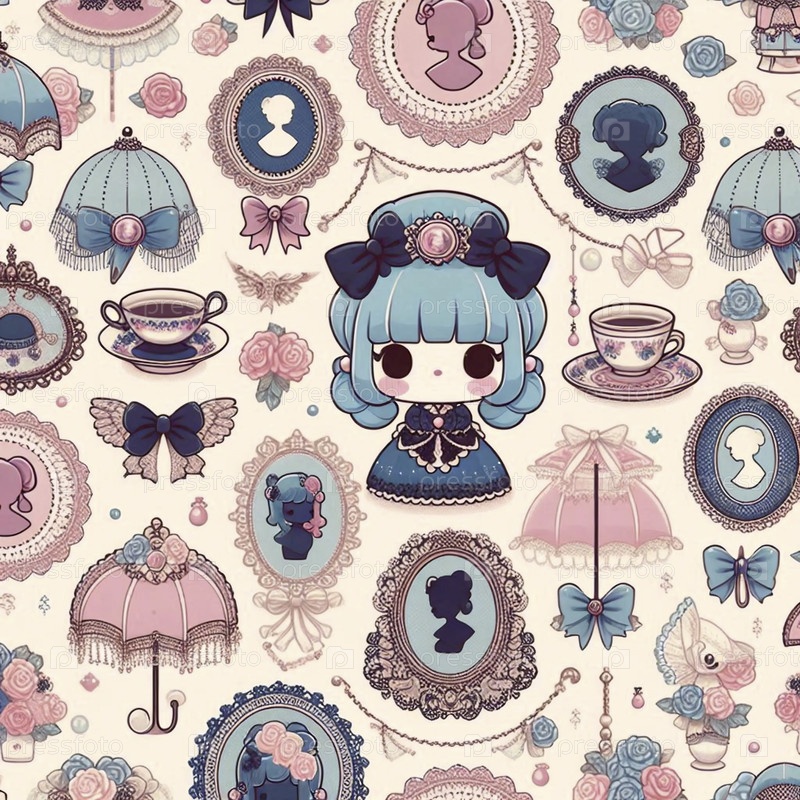 A kawaii pattern of lolita fashion elements, Ai generated image (кавайский шаблон модных элементов Лолиты), созданный Ай