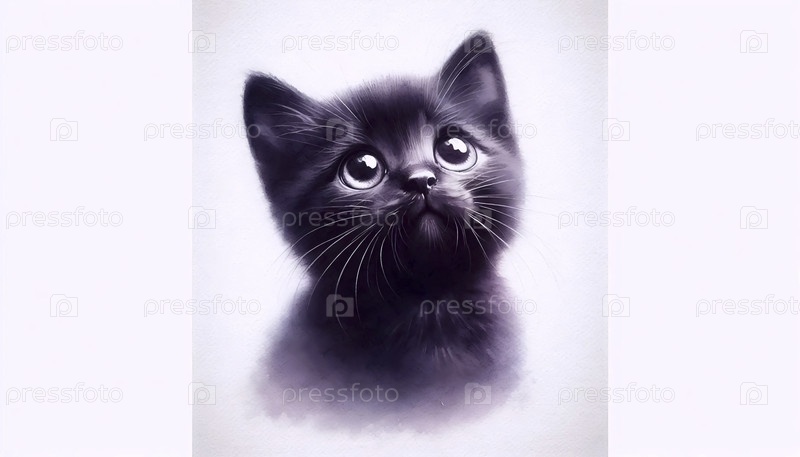Милая акварельная живопись просящего кота, Ai generated image