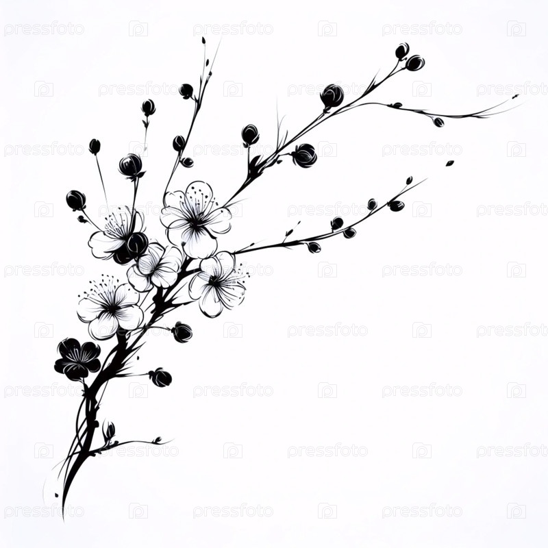 Вишневый цветок ветви линейного искусства, Ai generated image