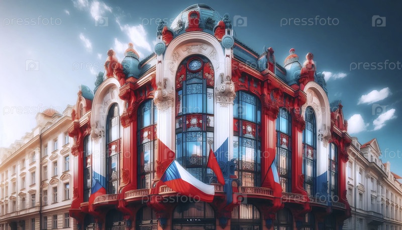 Чешский флаг в архитектуре арт-деко, Ai generated image A