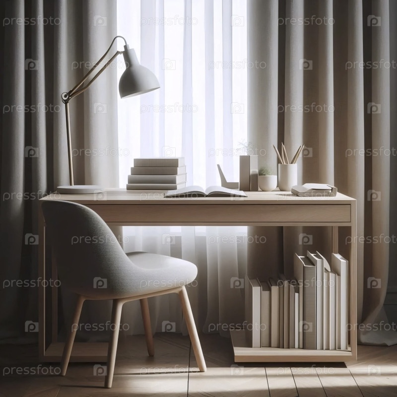 Элегантный нейтральный уголок домашнего офиса, Ai generated image