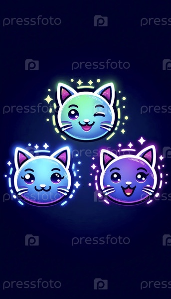 Набор наклейки с неоновым лицом кошки, Ai generated image