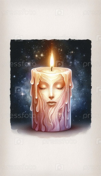 Свеча с теплым светом акварельный арт-принт, Ai A generated image