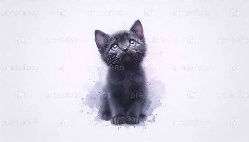 Милая акварельная живопись просящего кота, Ai generated image
