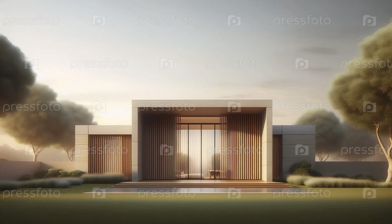Нейтральный фотоотпечаток современного дома середины века, Ai generated image