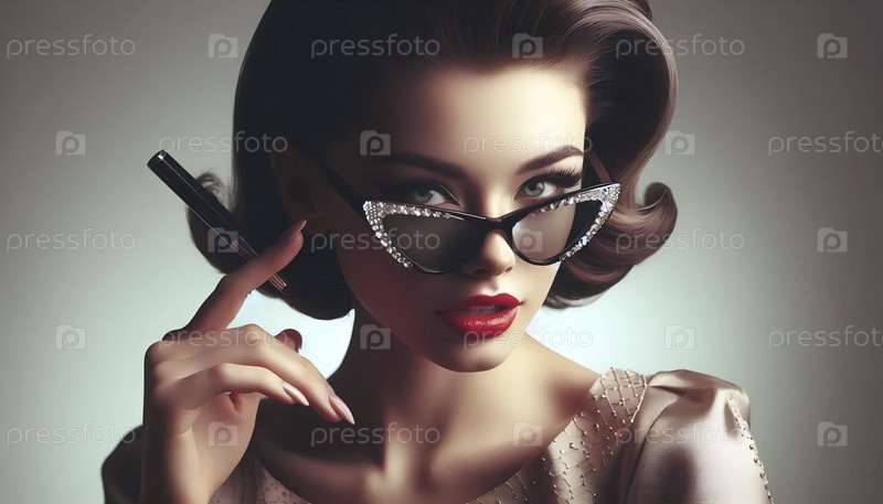 Портрет в 1950-х годах из-за кошачьих очков, Ai generated image