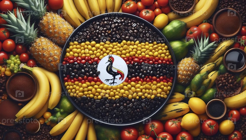 Угандийский флаг на оживленных уличных рынках и банановой торговле, A Ai generated image