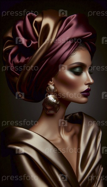 Женщина в шелковом тюрбане с серьгами, Ai generated image
