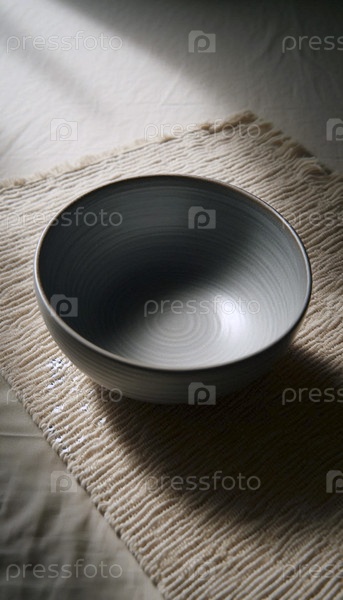 Глубокий мато-серый макет керамической чаши, пустой и размещенный на тканевом плацемате, Ai создал изображение