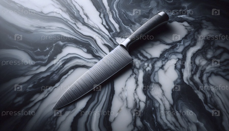Мокет ножа повара из полированной стали на бурно-серой мраморной поверхности, Ai generated image