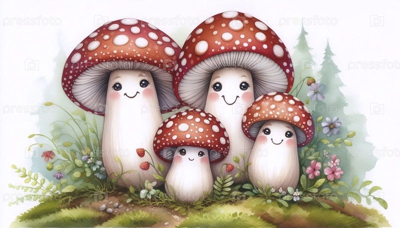 Акварельный арт-принт "Family Mushroom", Ай создал изображение A